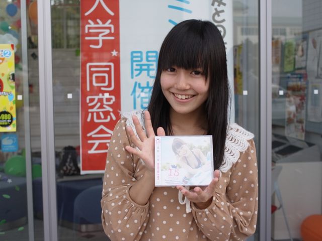 ※DVDを持っている女性は同窓生ではなく、学園祭に遊びに来たいわき在住のタレント諸橋沙夏さん(15才)です。