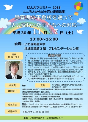 心理相談センターからのお知らせです。2007年度より開催しているばんえつセミナーを本年度も「こころとからだを育む講座」として開催します。