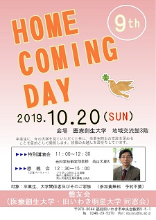 今年も、大学の学園祭に合わせ、同窓生の集い「ホームカミングデー」を開催します。この機会に、ご友人やご家族と共に皆様が青春時代を過ごした大学にお越しいただき、同窓生同士の絆を深めていただきたいと思います。もちろん、お一人での参加も大歓迎です。皆様のご来場をお待ちしております。