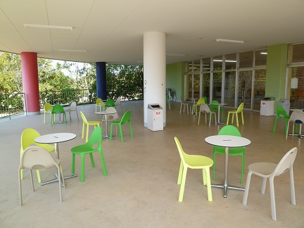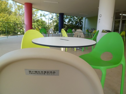 昨年に引き続き、厚生館1階のテラスに、テーブル・チェアセットを寄贈しました。